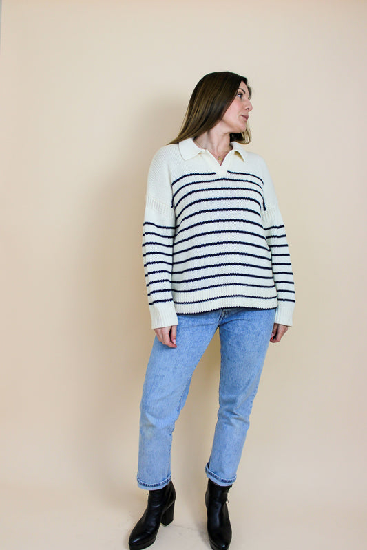 ALEX MILL Jacques Stripe Collar Pullover Jumper Size L