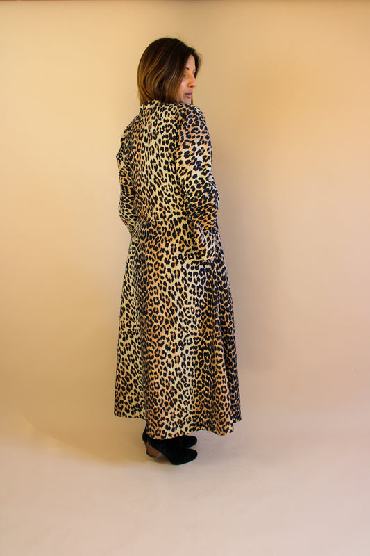 GANNI Leopard Cotton Poplin Zip Midi Dress Size 12
