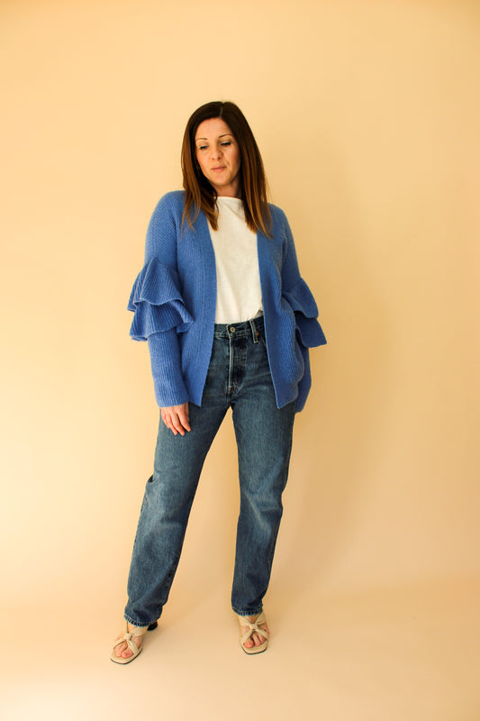 ESSENTIEL ANTWERP Frill Sleeve Ribbed Cardigan Size S