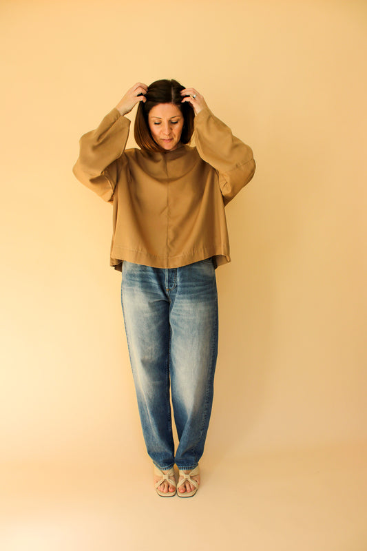 JESSICA LEWIS Wide Neck Tapered Sleeve Blouse Size M