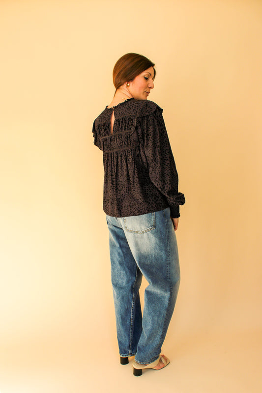 RAILS Kade Animal Print Smock Blouse Size L