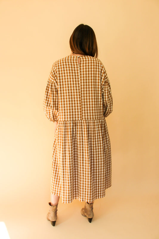 APRIL MEETS OCTOBER Gingham Midi Raw Edge Dress One Size