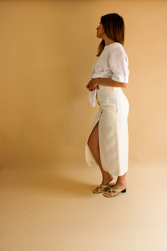 ALEX MILL Linen A-line Button Midi Skirt Size S
