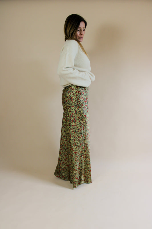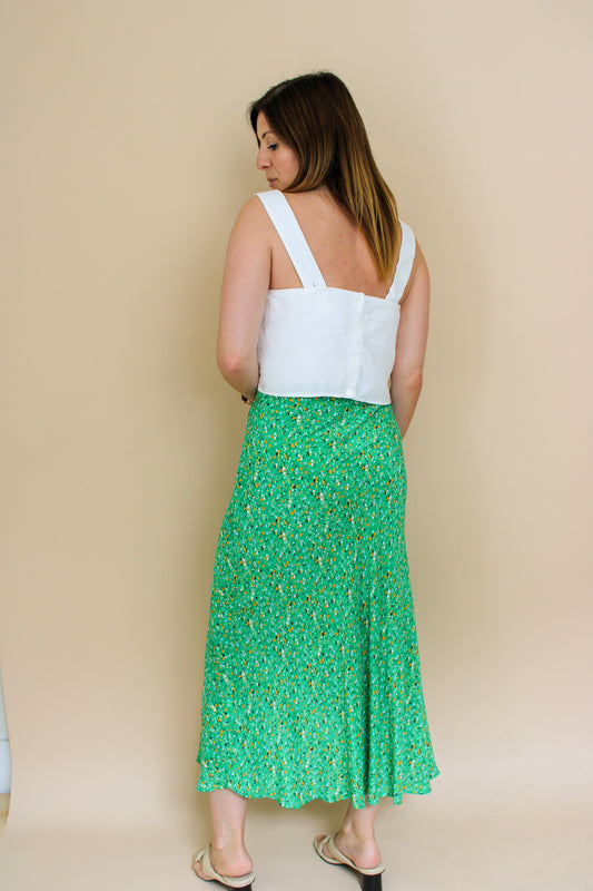 WHISTLES Green Ditsy Blossom Bias Cut Midi Skirt Size 10