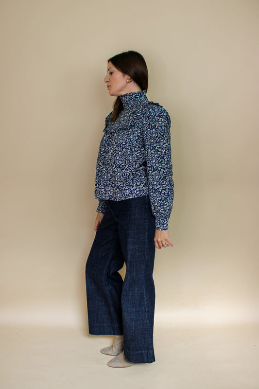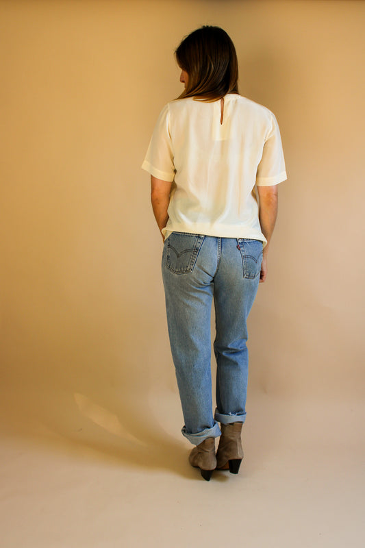 TOAST Washed Denim Pocket Short Sleeved Top Size S