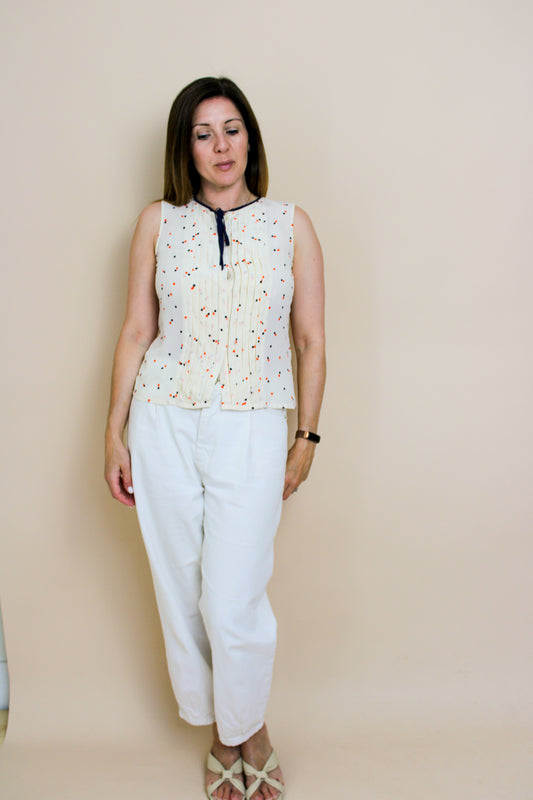 WHISTLES Sleeveless Polkadot Silk Blouse Size 10