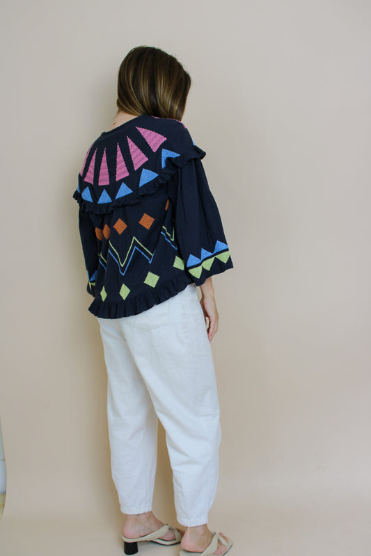 STELLA NOVA Embroidered Multi Shape Blouse Size 8-10
