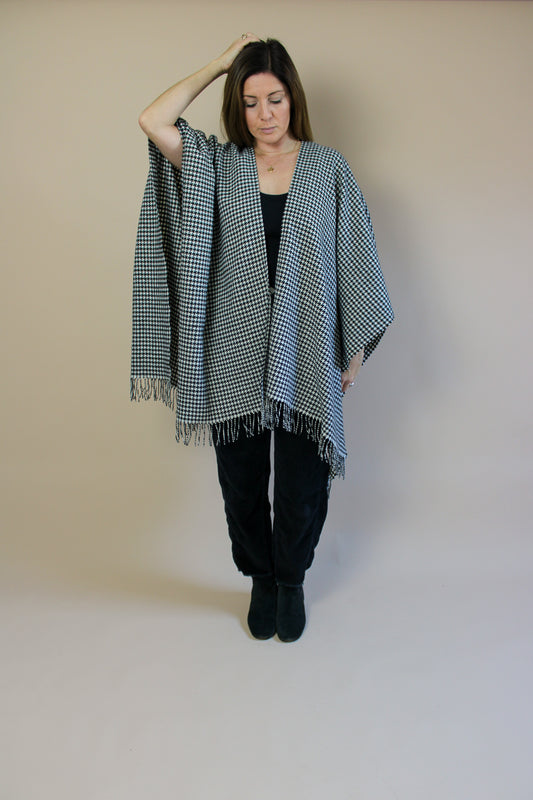 VINTAGE St Michael Hounds-tooth Check Cape Shawl One Size