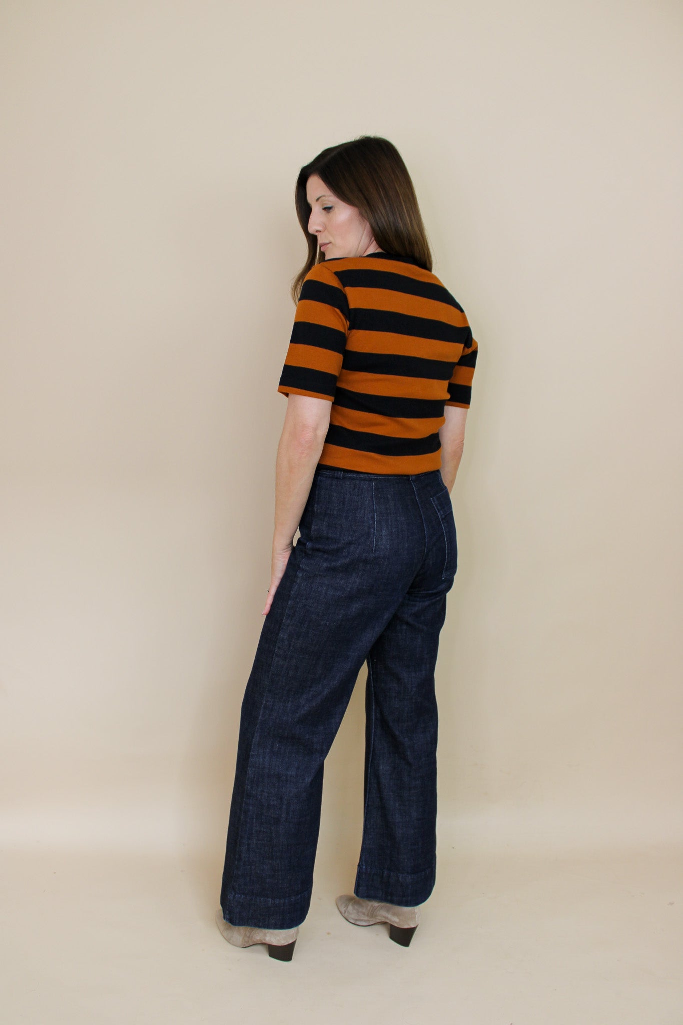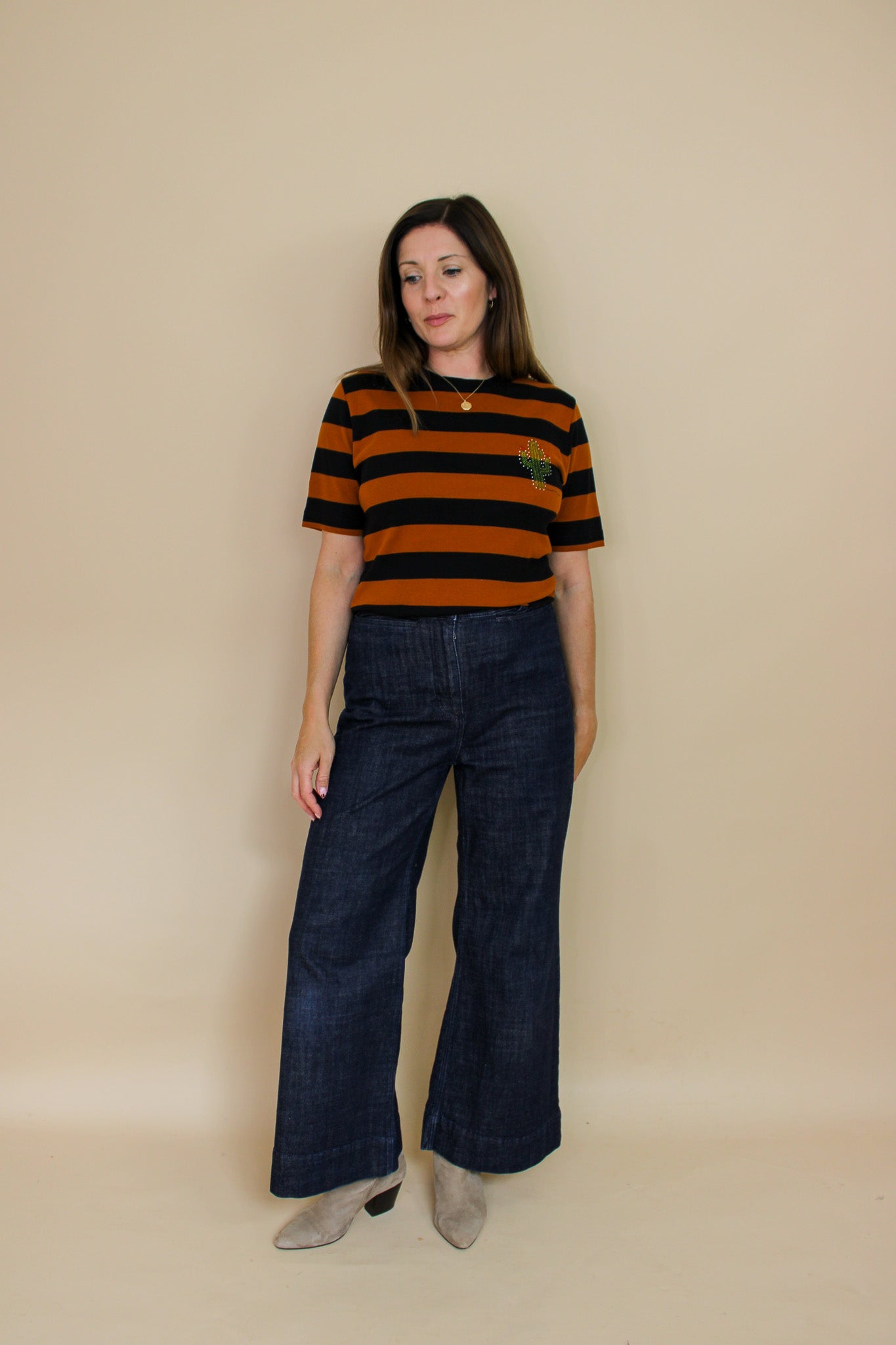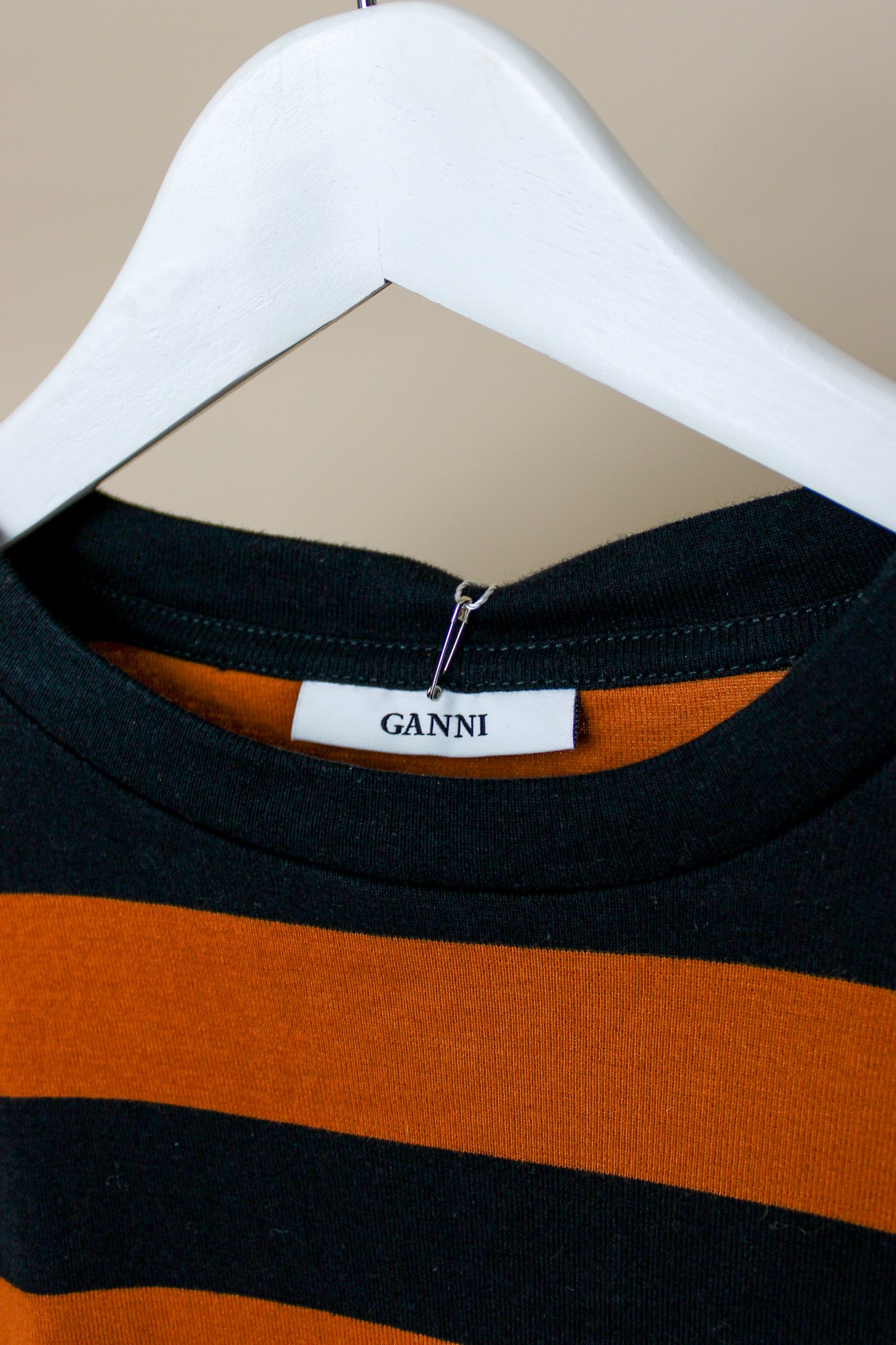GANNI Everman Crystal Cactus Embellished Stripe Cotton T Shirt Size L