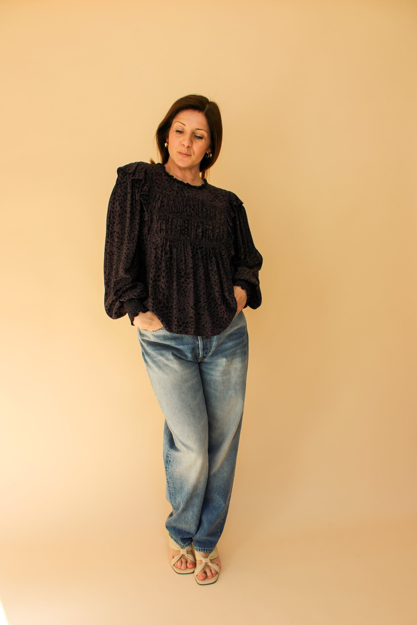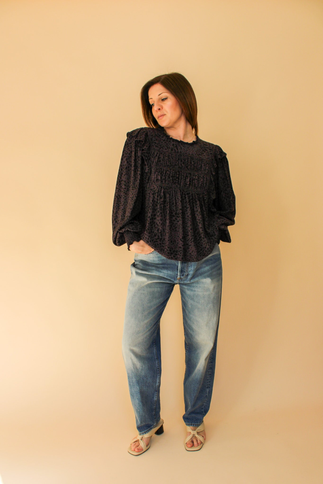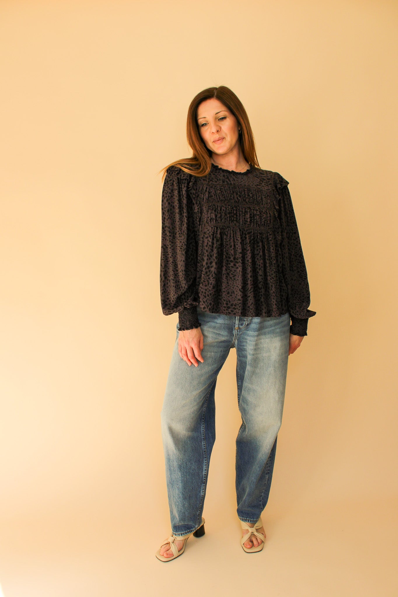 RAILS Kade Animal Print Smock Blouse Size L