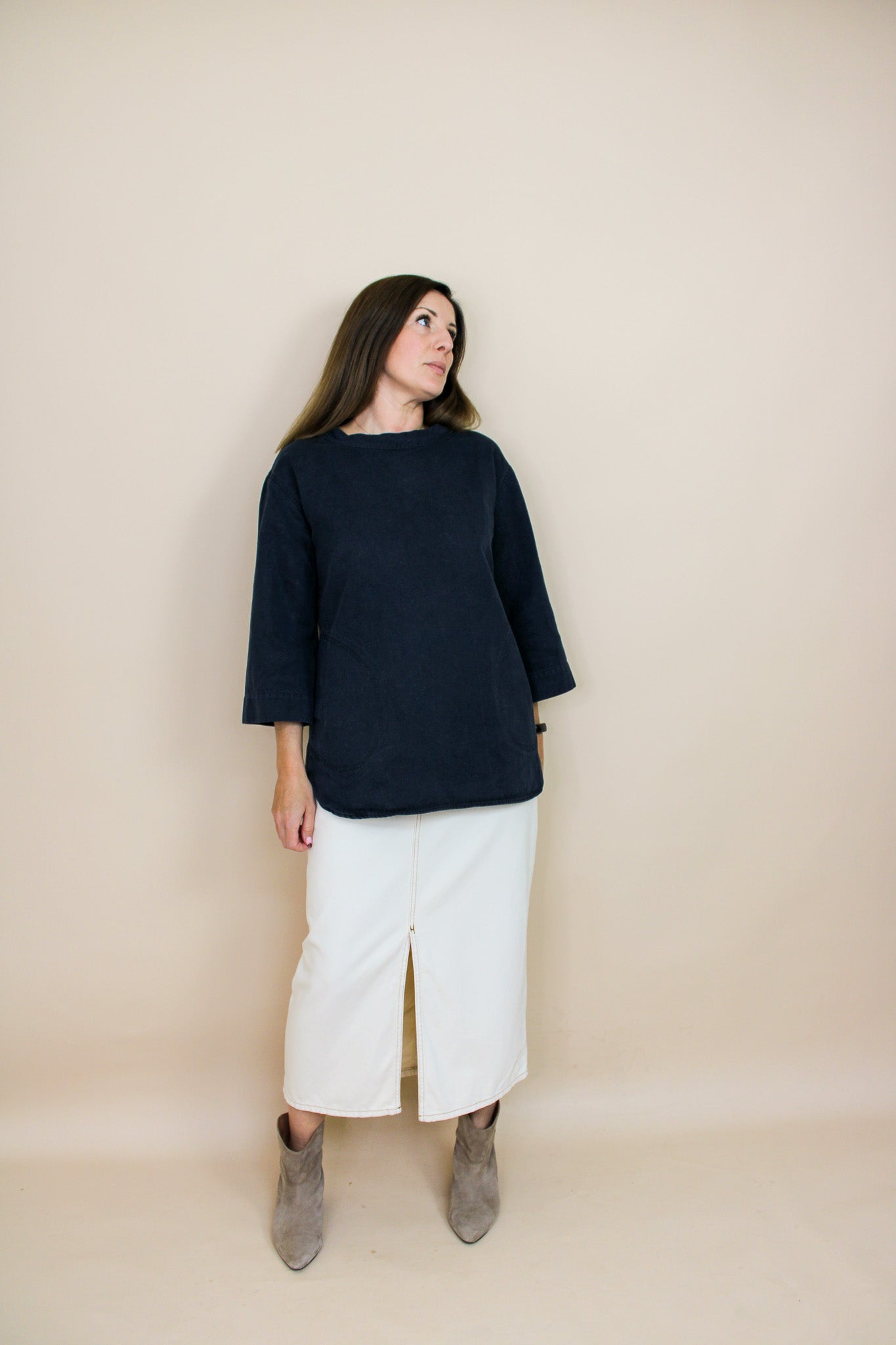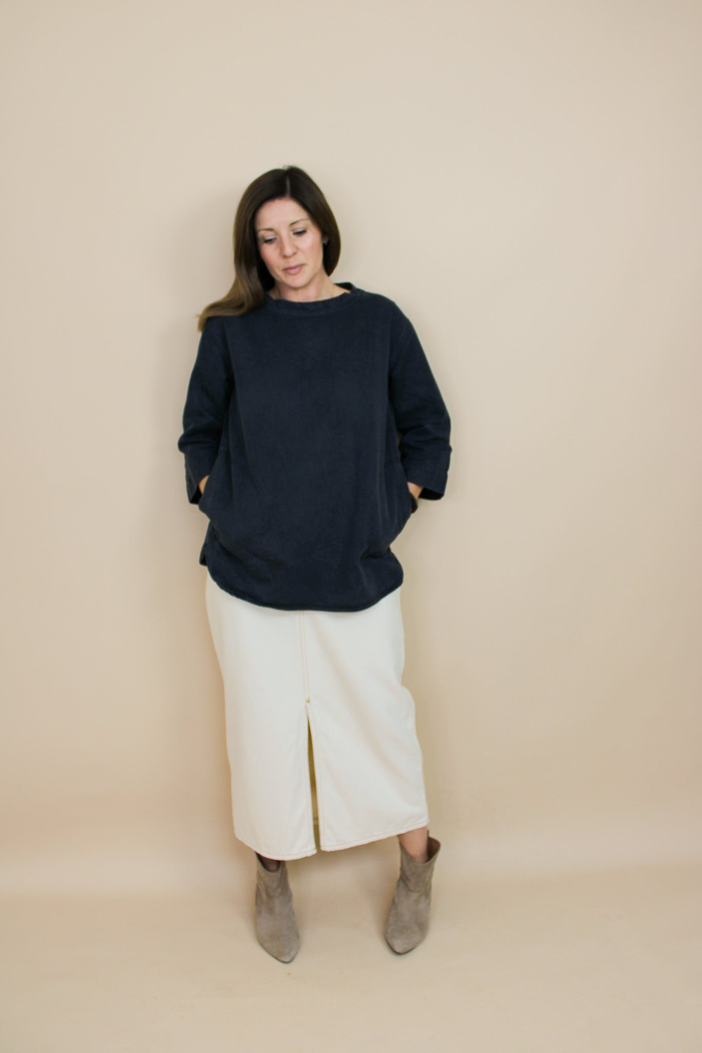 Measurements – full length (centre back neckline to hem) 69 cm. Sleeve length 45 cm.